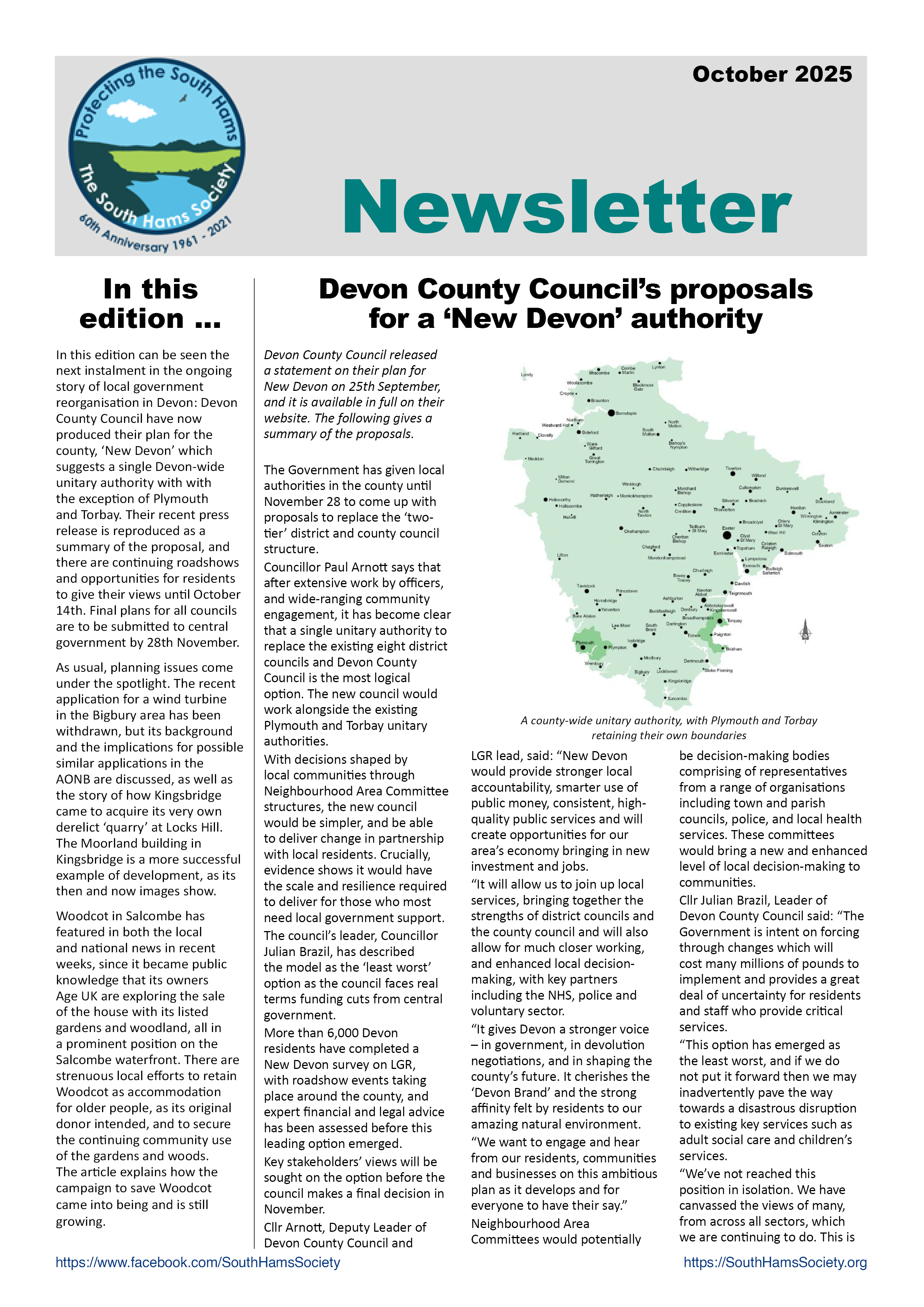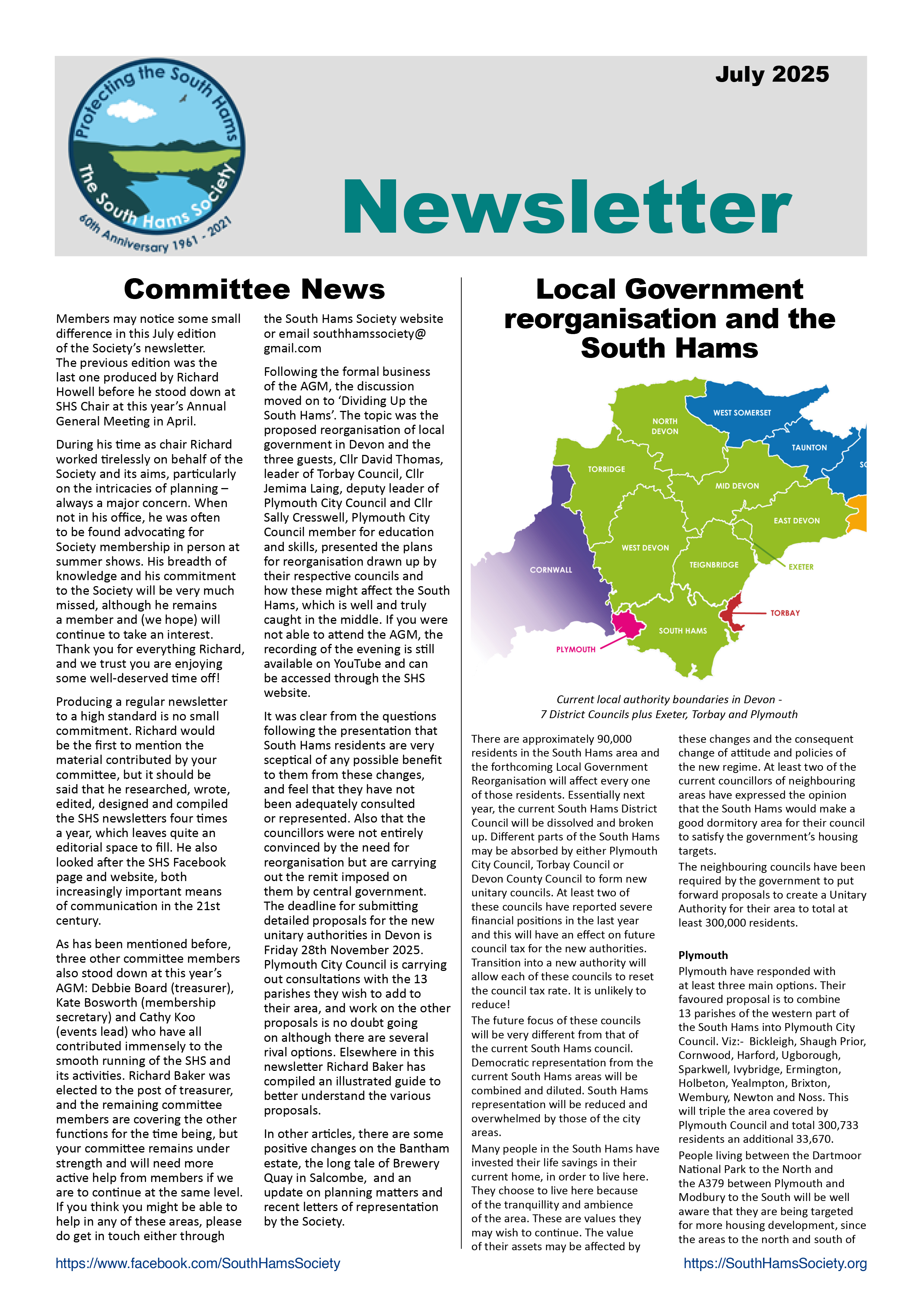 In this issue: there is the continuing story of local government reorganisation, as Devon County Council produce their own plan for a 'New Devon' set-up. The planning... Read more
